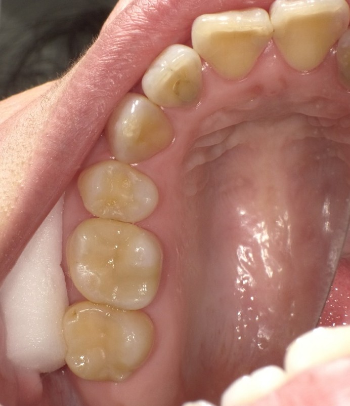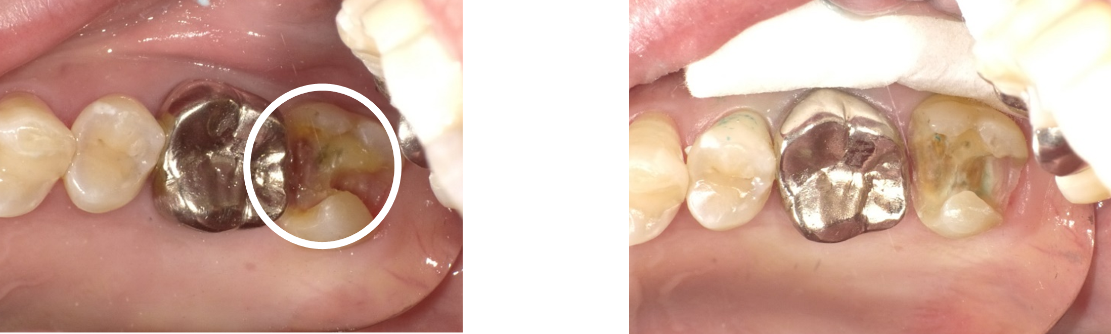 右側の写真は当院で右上奥歯の治療後に撮影したものです。