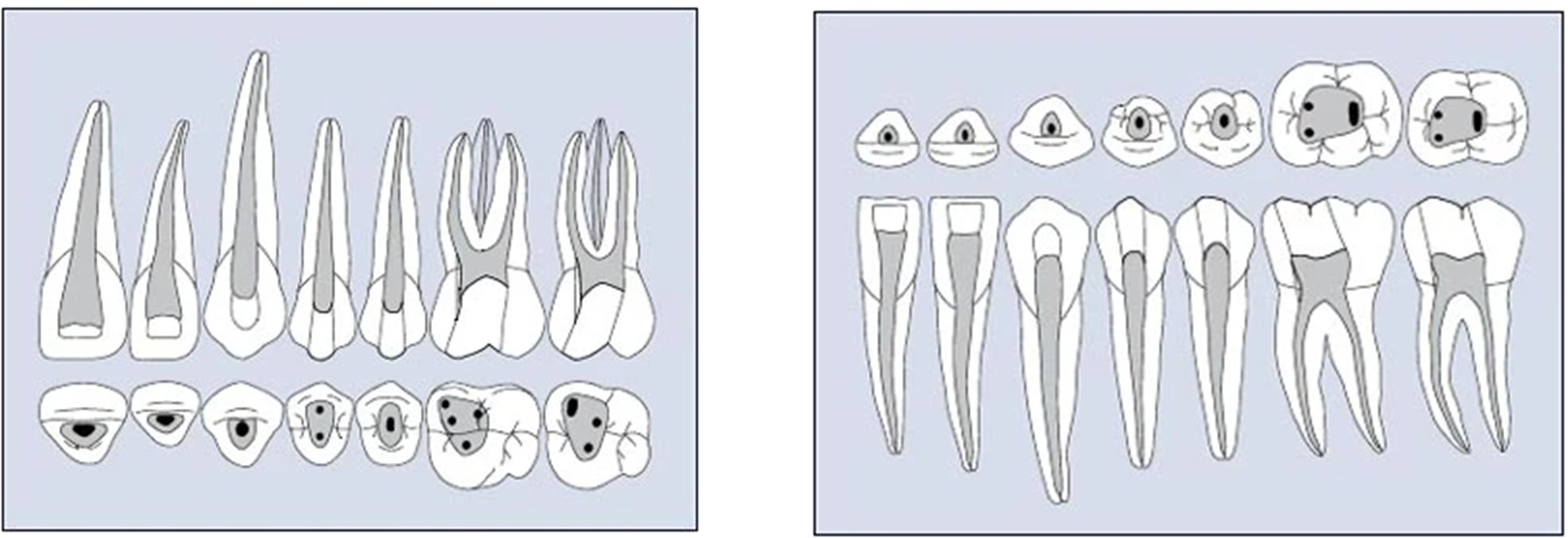 この根管治療では様々な器具を使用します。歯の中の形はとても複雑で人によって個性があるため、適した器具を選択する必要があります。歯の種類によって根管の数が異なりますし、同じ種類の歯であっても人によって長さやカーブなどが異なります。奥歯になるほど根の数、根管の数が増えます。