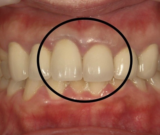 1本だけ歯が長いと根元の部分の清掃がしにくい場合があり、清掃不良から改めて虫歯になるケースもあります。別の歯ですが前歯では特に歯肉のラインの不揃いは目立ちます。