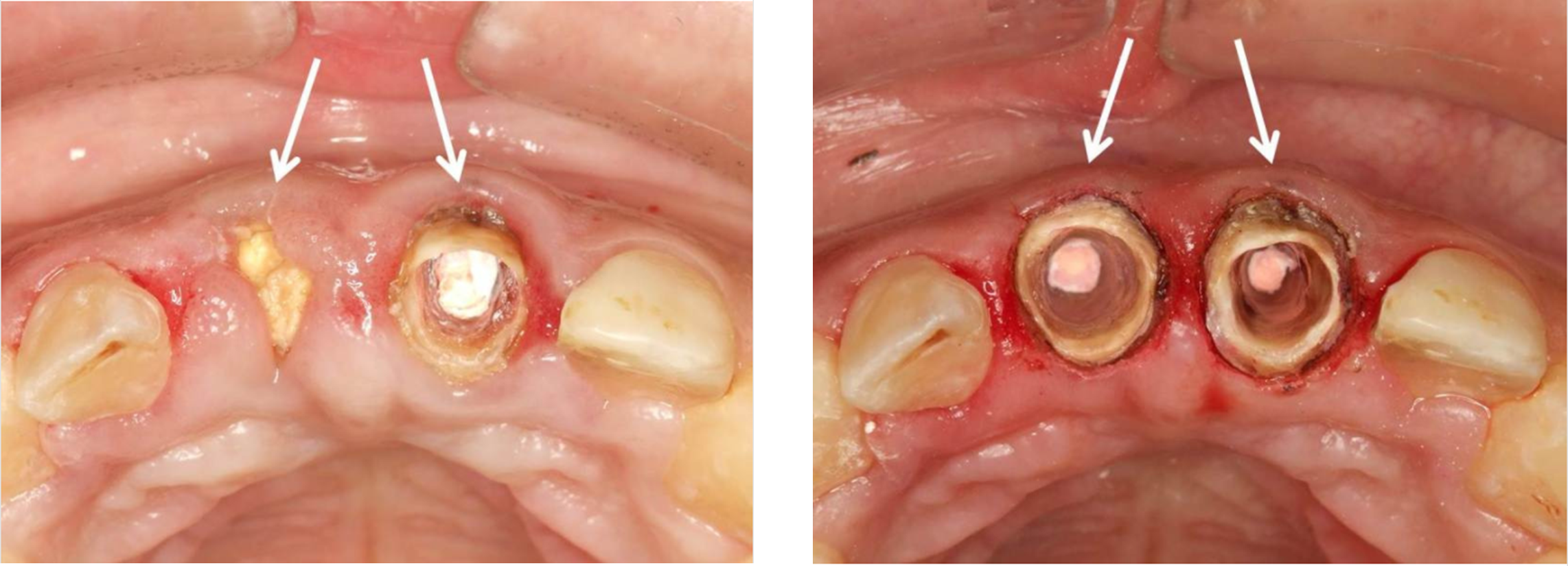 上の前歯だったため見た目を考慮し仮歯をして行いました。見た目は良いのですが清掃性が落ちるためお手入れを頑張っていただく必要があります。