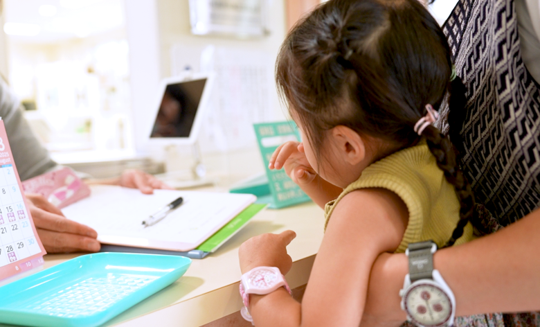 受付でお子様をお預かります。保護者の方はそのまま診療室へ移動してください。